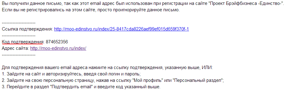 P.S. Есть несколько причин, почему письмо с кодом подтверждения e-mail от Вашего почтового сервера могло не дойти: