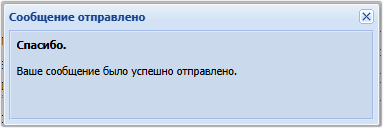 При успешной отправке сообщения должно выйти окно: